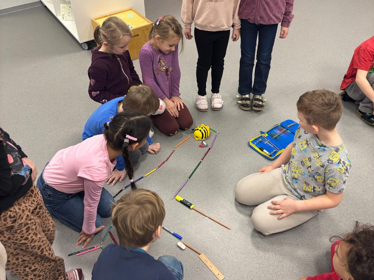 Auch die BeeBots kommen zum Einsatz. Diese kleinen programmierbaren Roboter helfen den Kindern, erste Erfahrungen mit einfachem Programmieren und logischem Denken zu sammeln.