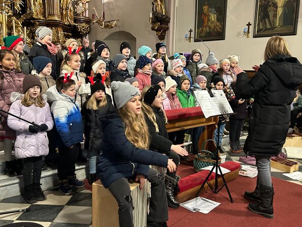 Der Schulchor unserer Volksschule ist ein lebendiger und wichtiger Bestandteil des Schullebens. Rund die Hälfte aller Kinder aus den vier Schulstufen nimmt mit großer Begeisterung an diesem Wahlpflichtfach teil. Gemeinsam zu singen macht nicht nur Freude, sondern stärkt auch das Gemeinschaftsgefühl und das Selbstvertrauen der Kinder. Im Laufe des Schuljahres bereitet der Chor verschiedene Auftritte vor, bei denen die jungen Sängerinnen und Sänger ihr Können präsentieren dürfen. Traditionell gestaltet der Schulchor die feierliche Adventeröffnung, sorgt bei der schulischen Weihnachtsfeier für eine stimmungsvolle musikalische Umrahmung und bringt bei der Muttertagsfeier mit liebevoll ausgewählten Liedern viele Herzen zum Klingen. Auch beim Sommerfest der Schule trägt der Chor mit schwungvollen Beiträgen zu einer fröhlichen Atmosphäre bei. In den Chorproben lernen die Kinder unterschiedliche Lieder kennen – von traditionellen Kinderliedern über jahreszeitliche Stücke bis hin zu modernen Songs. Dabei wird nicht nur an Melodie und Rhythmus gearbeitet, sondern auch an Ausdruck, Bühnenpräsenz und dem gemeinsamen Klang. Ein besonderes Erlebnis ist für den Chor die Teilnahme am Bezirksjugendsingen, das alle paar Jahre stattfindet. Dort haben die Kinder die Möglichkeit, gemeinsam mit vielen anderen Schulchören aufzutreten und die Freude am Singen zu teilen. Der Schulchor zeigt jedes Jahr aufs Neue, wie viel Begeisterung, Talent und Gemeinschaft in unserer Schule steckt.