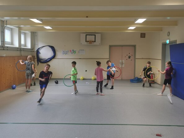 Der Schulsport bietet unseren Schülerinnen und Schülern eine abwechslungsreiche Möglichkeit, Fitness, Koordination und Teamgeist zu erleben. Im Turnunterricht stehen vielfältige Aktivitäten auf dem Programm: klassische Ballspiele, Gymnastik, Koordinations- und Kraftübungen sowie kreative Bewegungslandschaften sorgen dafür, dass jede Stunde spannend bleibt. Dabei werden motorische Fähigkeiten gefördert und die Freude an Bewegung gestärkt.